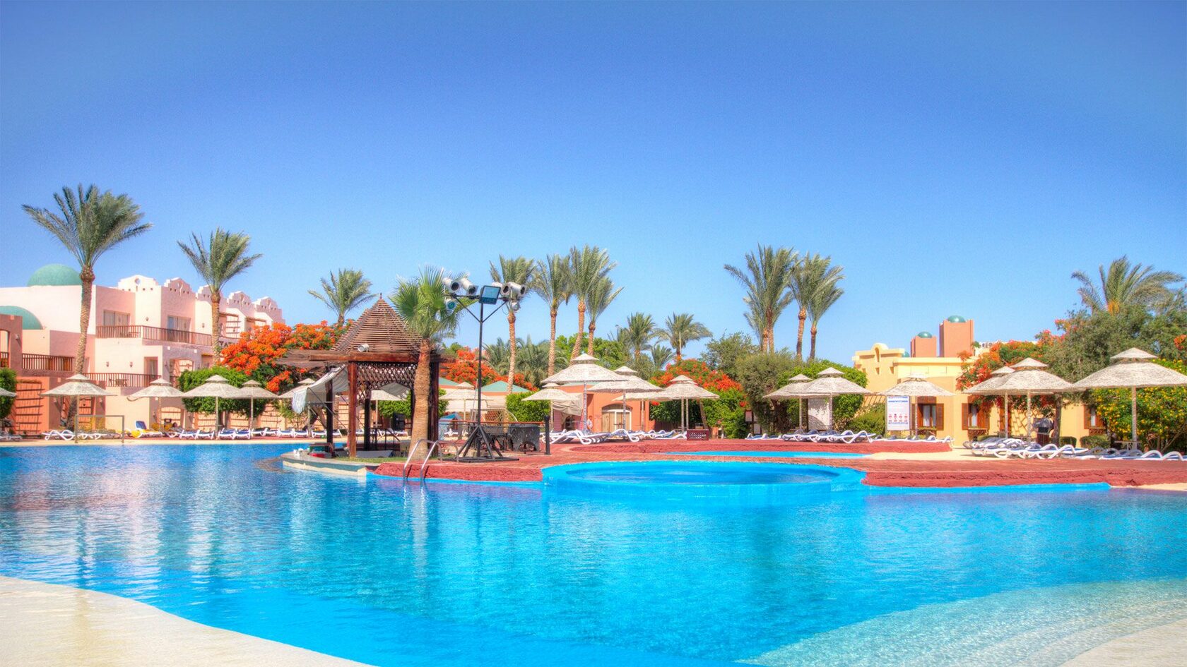 Один из лучших отелей для семейного активного отдыха в Хургаде. Большая зеленая территория, разнообразная инфраструктура, рядом небольшой коралловый риф.